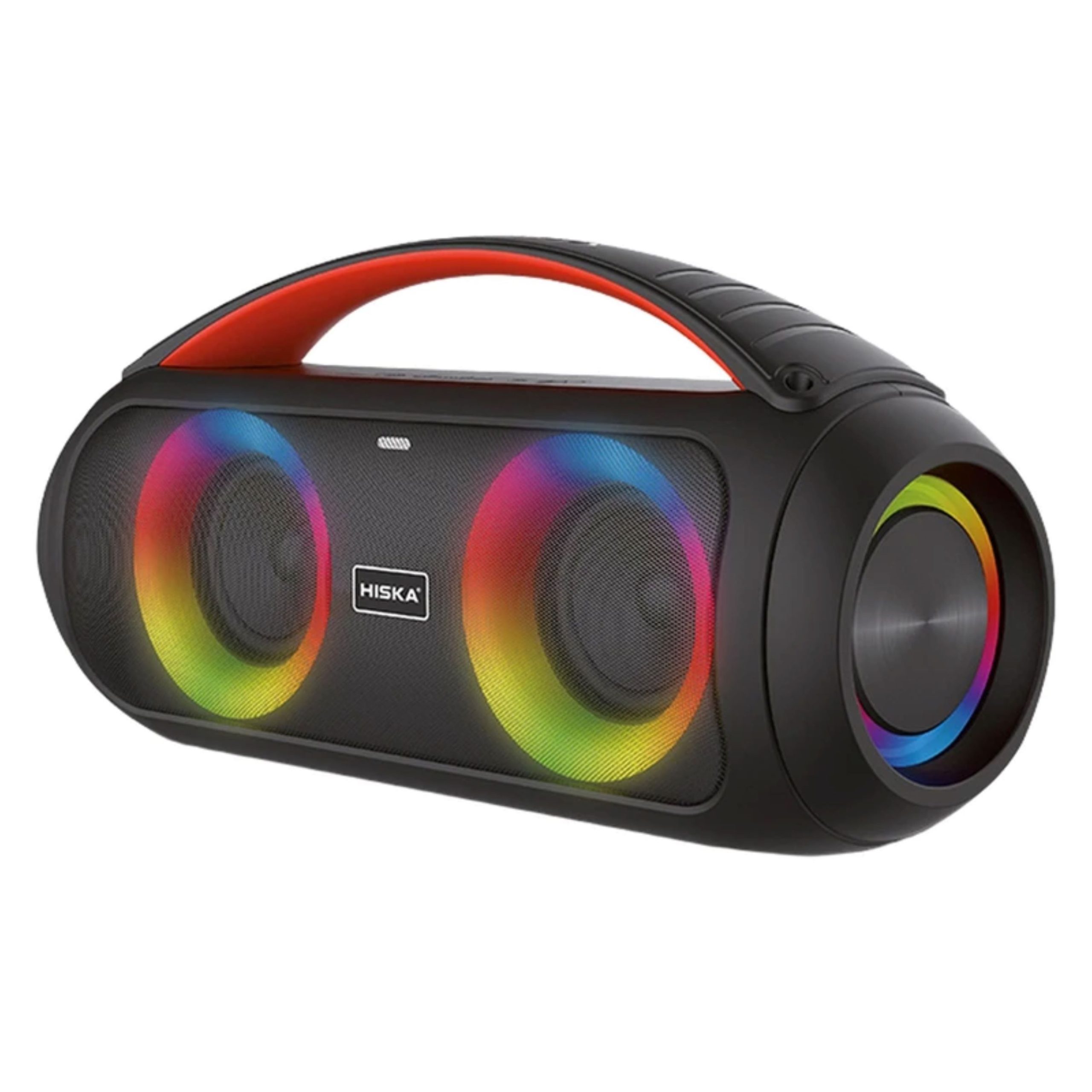 اسپیکر بلوتوثی قابل حمل هیسکا مدل B114، مدت زمان پخش 3 ساعت، نسخه بلوتوث 5.1، همراه با ریموت کنترل، کابل AUX، کابل Type-c، درگاه ارتباطی شامل شیار کارت حافظه، قابلیت پخش شبکه های رادیویی، قابلیت ضبط صدا، ضد آب